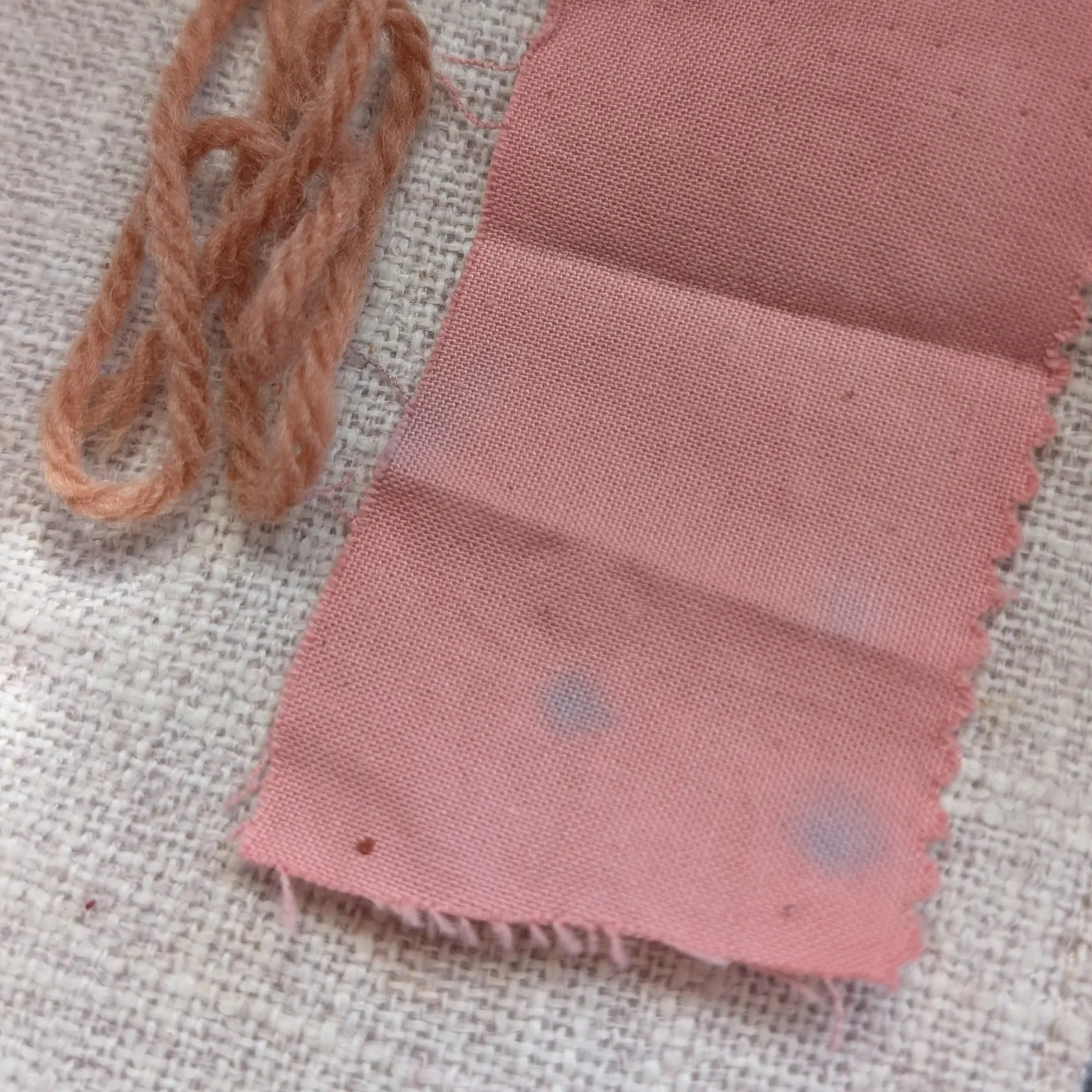 Sumac’s dye was especially interesting to me because you can see blue splotchiness in the bottom right corner. As the fabric dried, the splotches diluted and spread, turning the pink cool-toned. I believe the splotches occurred because it was drying on an uncleaned countertop and the contamination effected the acidity of the dye as it cured into the wet fabric.