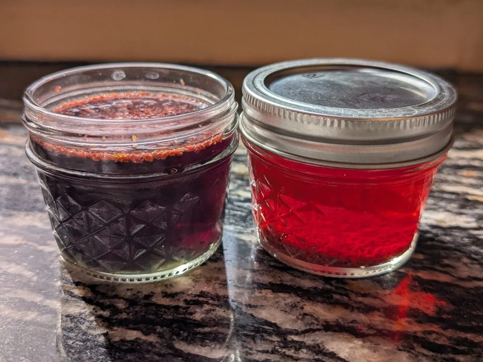 I first used iron water, which was simply made by soaking a rusty nail in a container of water for a few weeks. Yum. I added roughly a quarter teaspoon to each jar, which was way more than enough. I left the fibers in the mini baths for about three hours.
