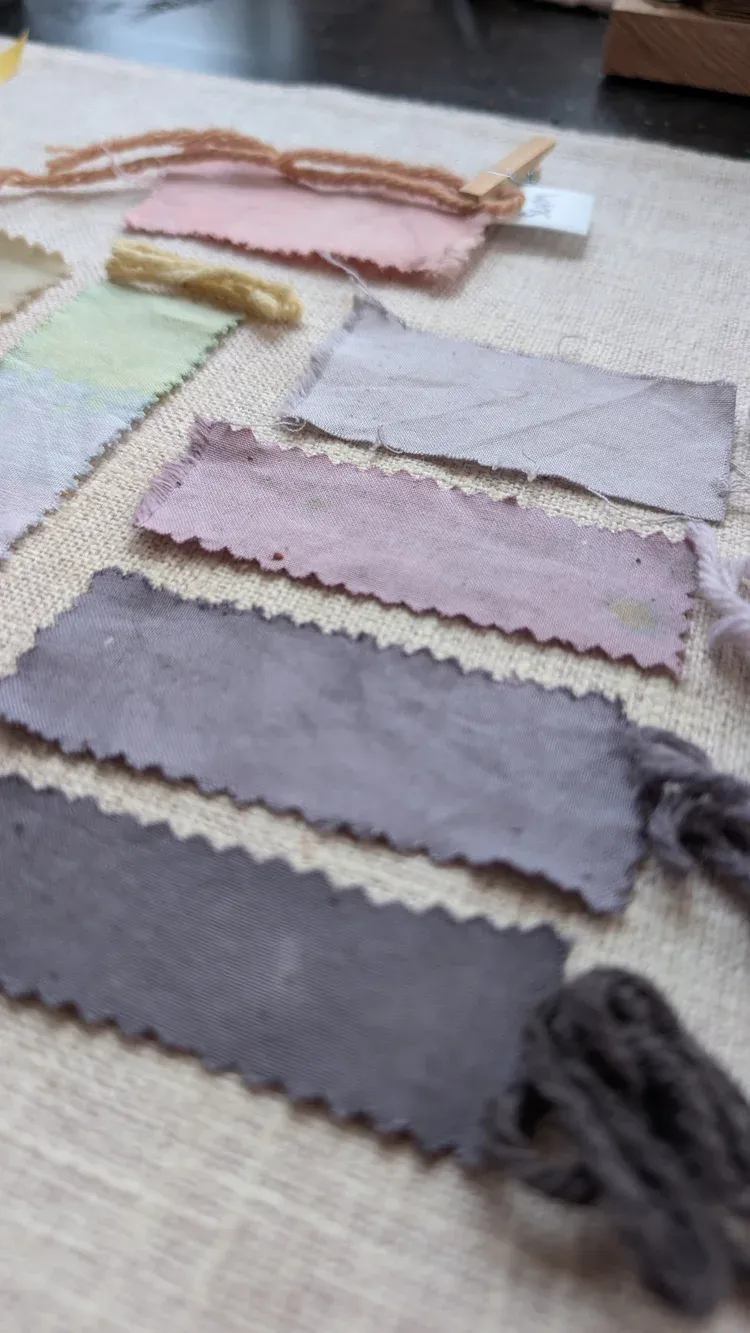 experiments with foraged dye materials including oak galls, walnut, and sumac.